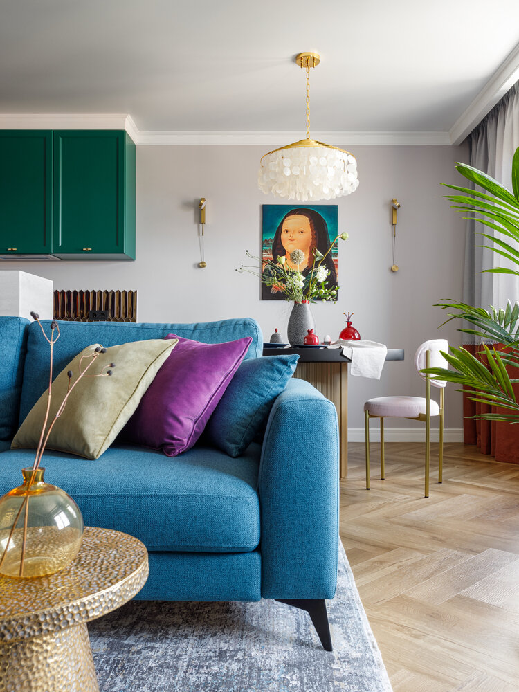 Фотография: Гостиная в стиле Современный, Эклектика, Квартира, Проект дня, Самара, Кирпичный дом, 3 комнаты, Более 90 метров, Айгуль Султанова – фото на INMYROOM