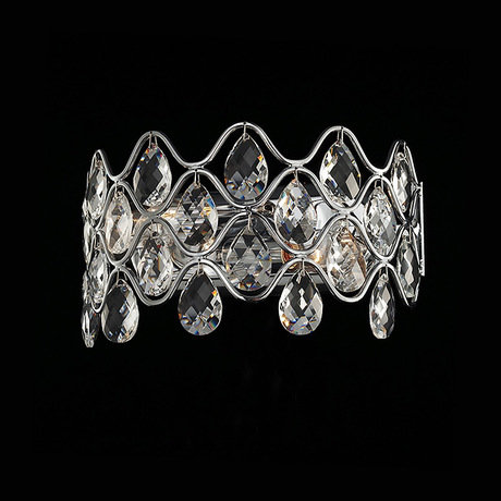 Настенный светильник из коллекции Nikon выполнен из хромированного металла. Декор: хрустальные прозрачные кулоны на арматуре.
